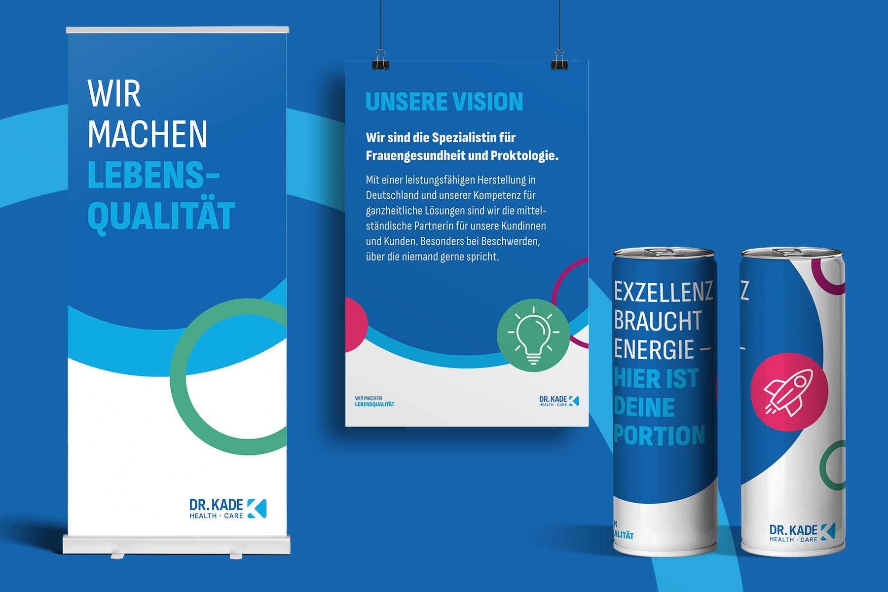 Ihre Mission: Die Lebensqualität von Menschen weltweit verbessern. Im Zuge der Neuausrichtung des Leitbilds von DR. KADE war ein neuer zeitgemäßer Unternehmensauftritt gefragt. Kurz: Zeit für ein frisches, nachhaltiges Corporate Design, das die wertebasierte Haltung von DR. KADE visuell und emotional erfahrbar macht – und das Unternehmen klar vom Wettbewerb differenziert.