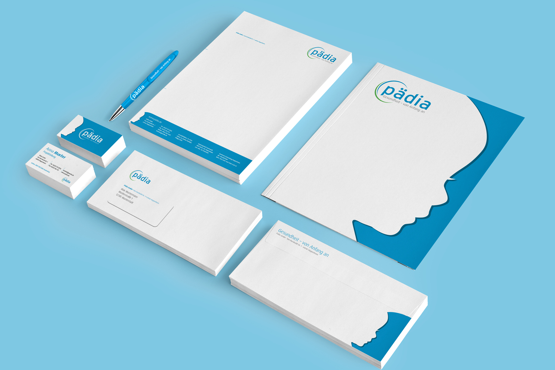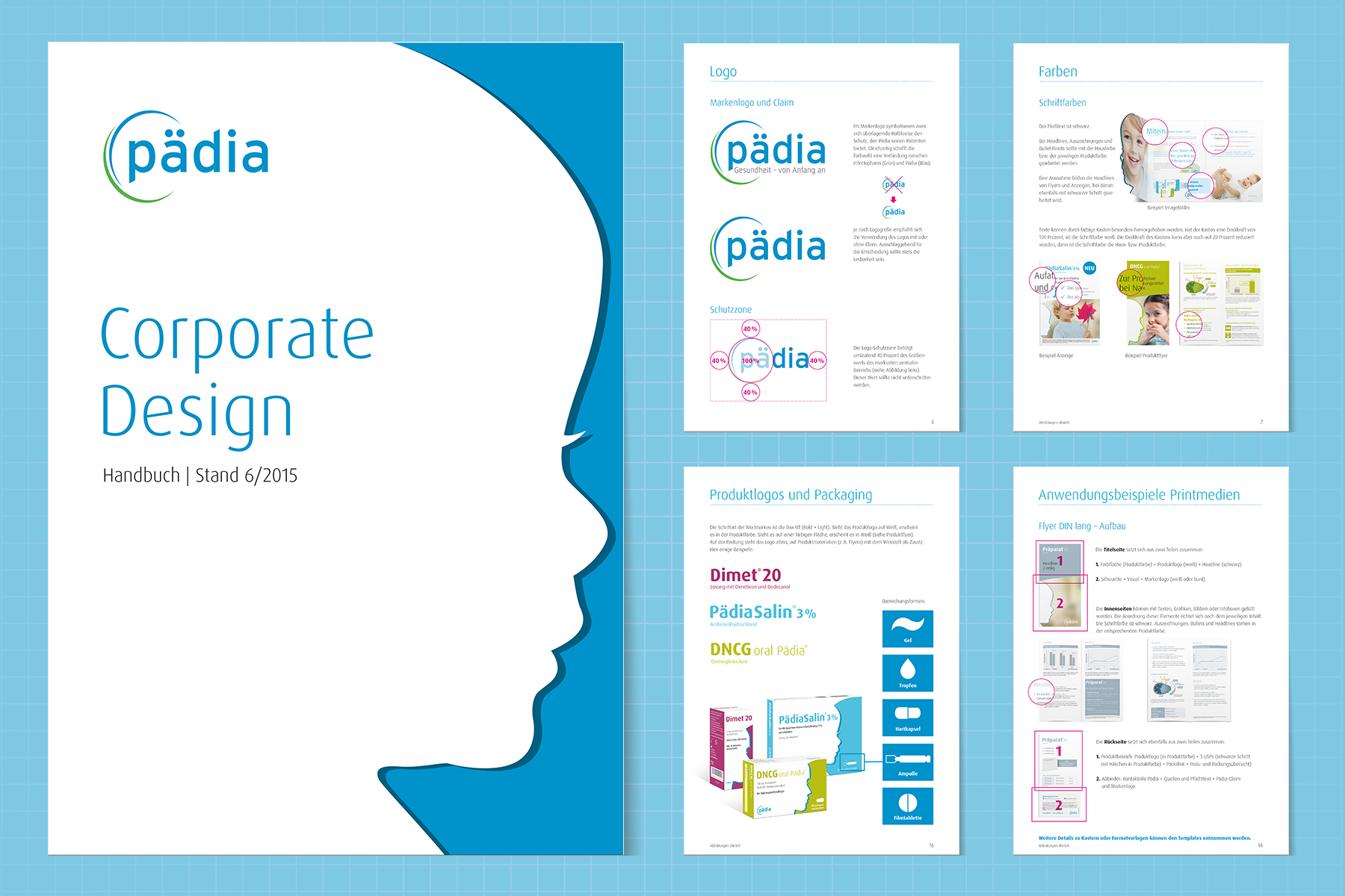 Unter der Leitidee „Gesundheit von Anfang an“ wurde ein unverwechselbares Markenbild entwickelt, das die Pädia GmbH klar als Spezialisten für pädiatrische Präparate im Relevant Set von Apotheken, Pädiatern und Hebammen positioniert und gleichzeitig Raum für zukünftige Portfolio-Erweiterungen lässt. Der Scherenschnitt dient dabei als zentrales Visual-Device und verleiht der Marke eine zeitlose, prägnante Kontur mit hohem Wiedererkennungswert. Ergänzt wird dieses Profil durch ein frisches, harmonisch abgestimmtes Color-Coding, das sowohl auf Unternehmensebene als auch für alle Produkte eine konsistente und flexibel erweiterbare Farbwelt schafft.